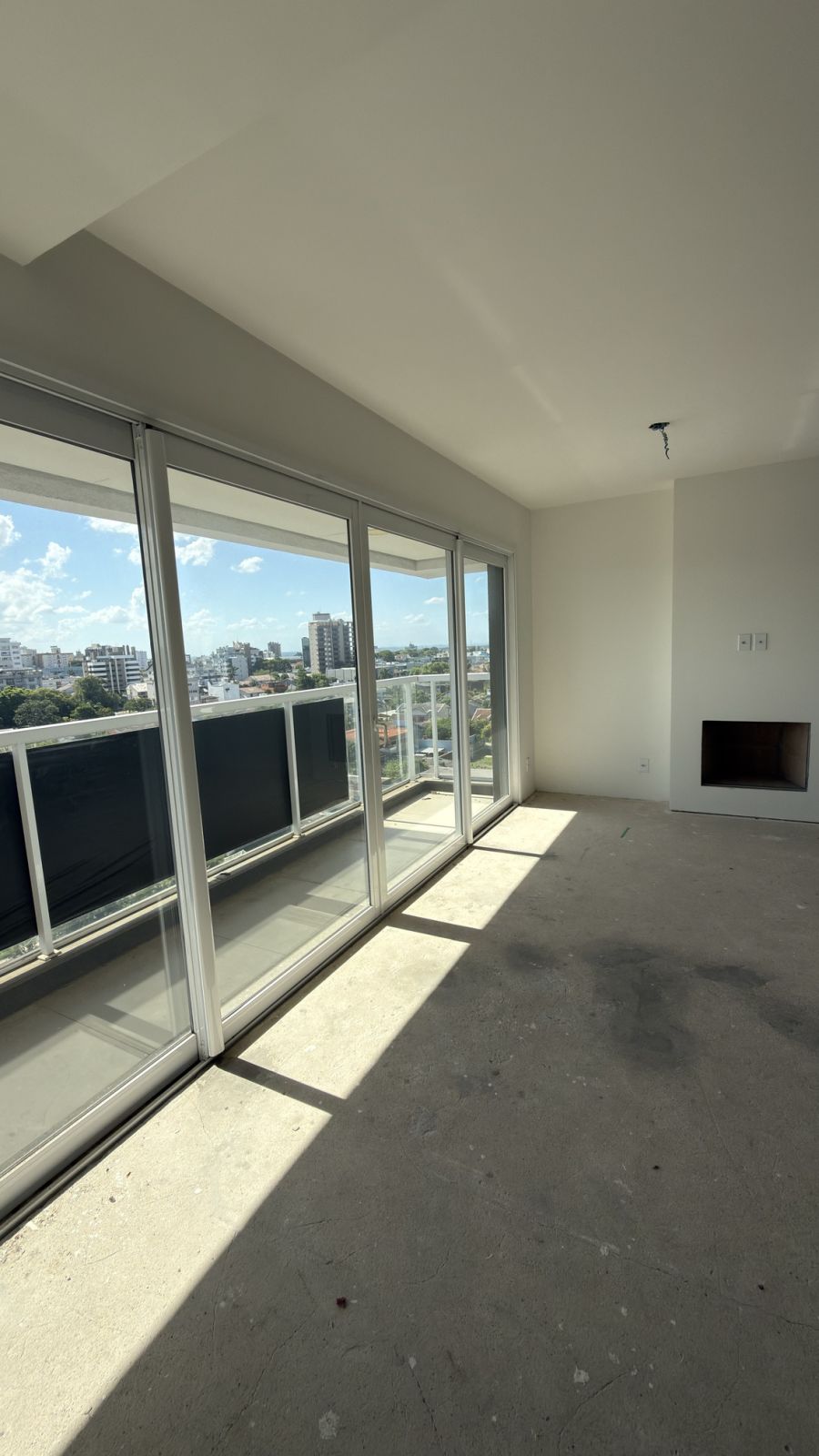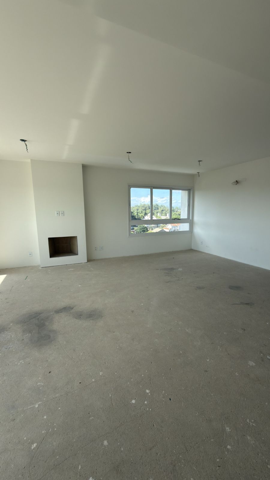* Living amplo com lareira e bem iluminado.